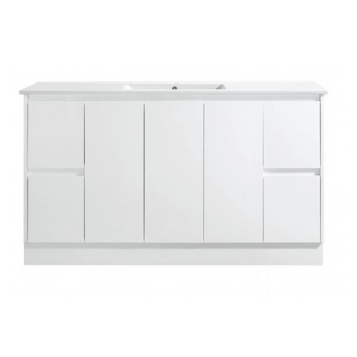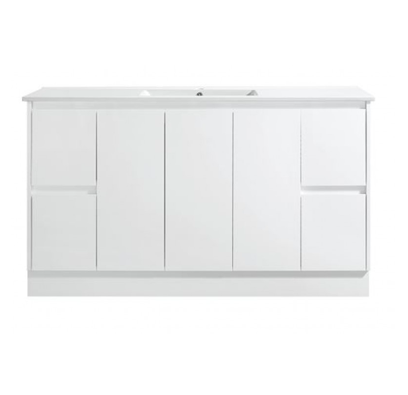 Avia Bathware Sammy Series 1500 Freestanding Vanity Gloss White with Ceramic Top SK7-1500W-SD