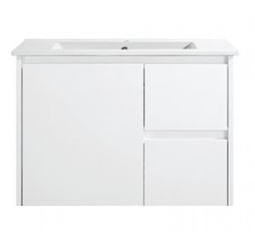 Avia Bathware Willow 750 Wall Hung Bathroom Vanity Gloss White with Ceramic Top WH8027-750W-SD