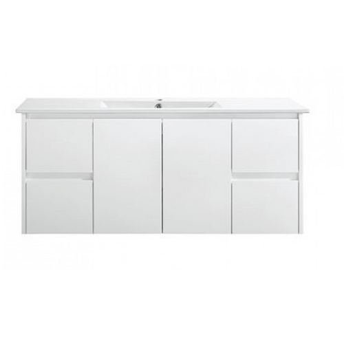 Avia Bathware Willow Series 1200 Wall Hung Vanity Gloss White with Ceramic Top WH8027-1200W-SD