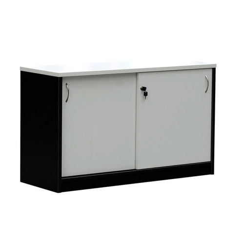 Sliding Door Buffet Lockable Cabinet 1200mm W Charcoal White