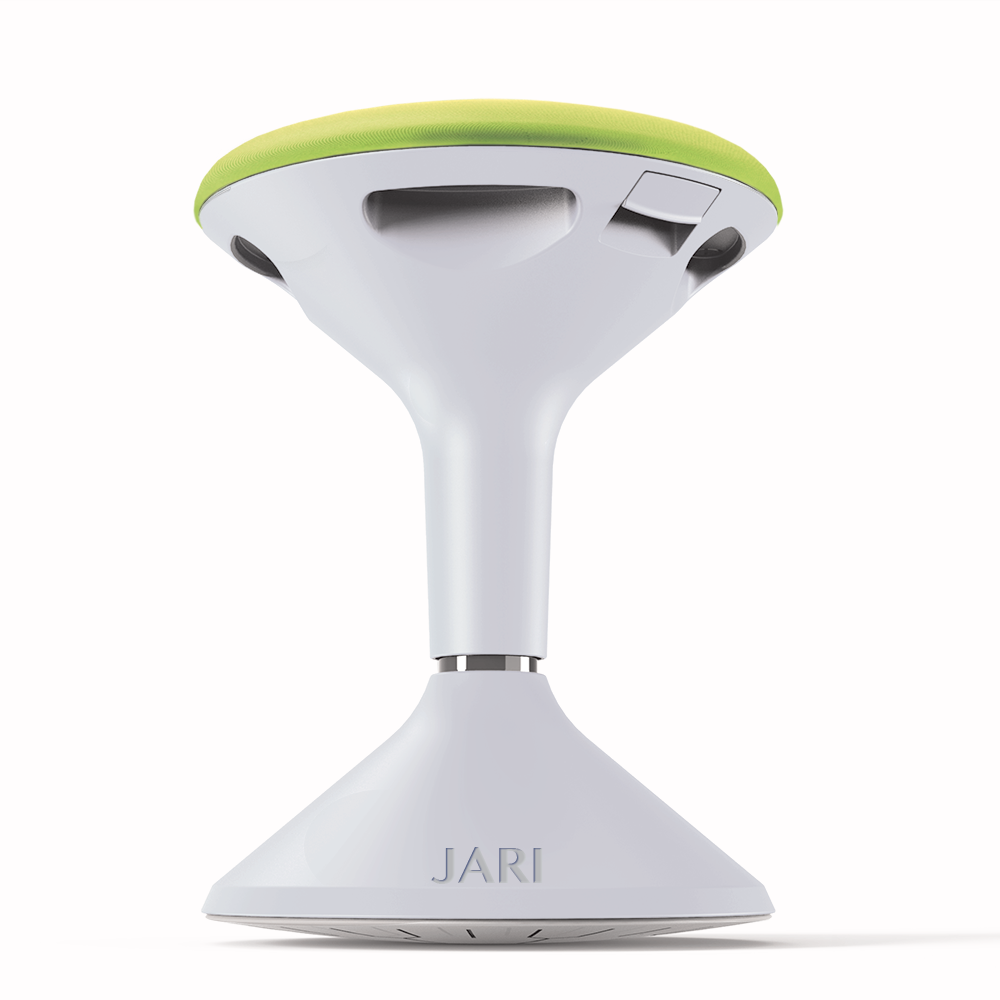 It is impossible to actually sit on a Jari Activstool no lying back no slouching and definitely no sitting still. With a rotating convex base Jari forms one leg of a stable tripod your own legs provide the other two parts. That means you are constantly flexing adjusting and moving; the ideal way to stay focussed and concentrate.