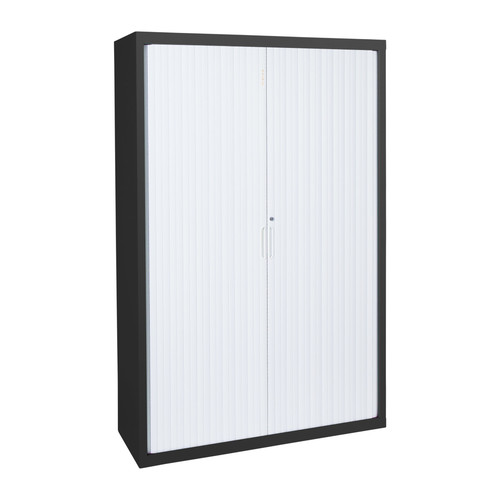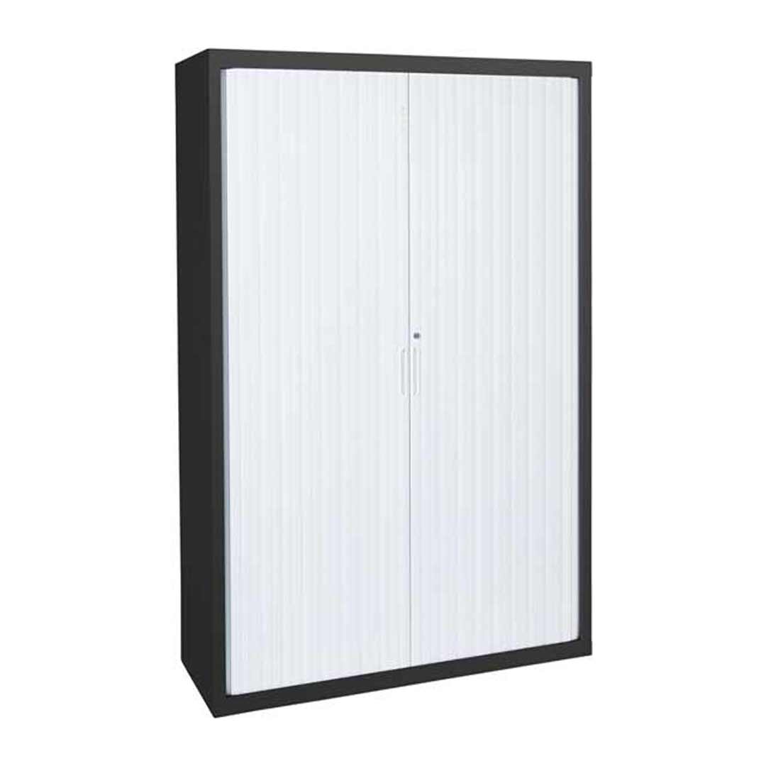 Statewide Tambour Cupboard Steel Adjustable Shelves 2 Door 1000mm Wide Stationery Lockable Black Ripple