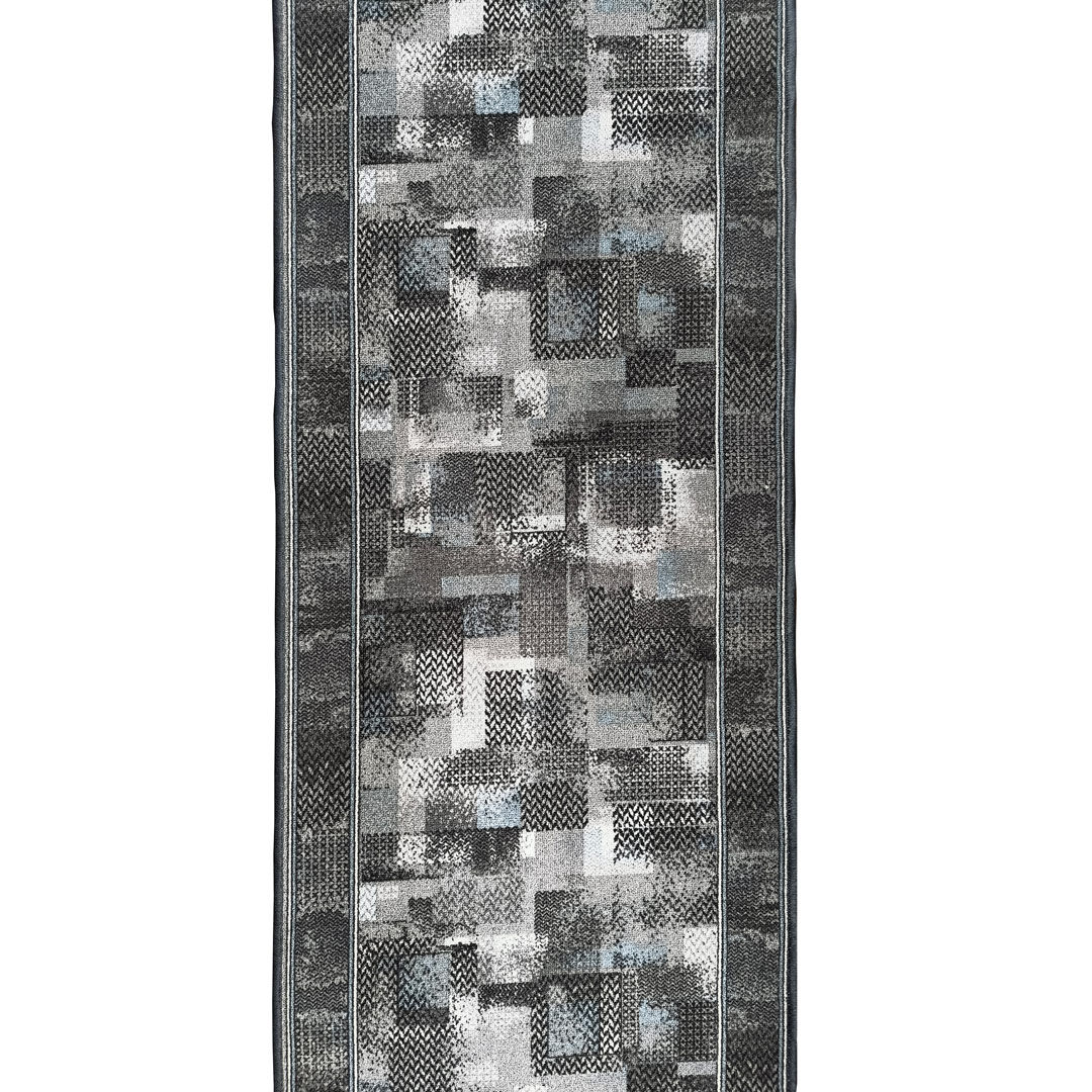 Tribe 98 Modern Patch Design Hall Runner 67cm wide Hallway Carpet Rubber Backed Grey