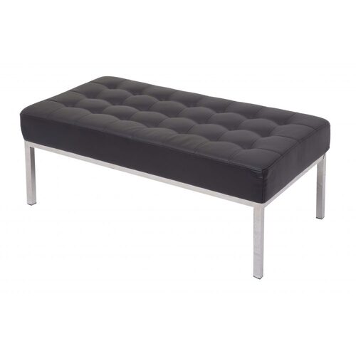 Add this ottoman to your Venus reception suite. Use as footstool or table. Button finish to black PU, easy clean upholstery. Stainless steel underframe and legs. Backed by a 3 year warranty.