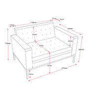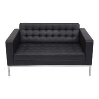 Elegant reception area two seater arm chair with button finish to black PU, easy clean upholstery. Stainless steel underframe and legs. Backed by a 3 year warranty.