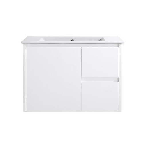 Wall Hung Bathroom Vanity Gloss White RH Drawers with Ceramic Top Avia Bathware Sierra WH32-750W-SD