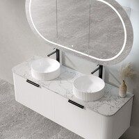Cabinet: Cabinet: Moisture Resistant Particleboard and Medium-Density Fibreboard/ Artificial Stone Top: 93% Natural Marble Powder (Calcium Carbonate), 5% Unsaturated Polyester (Organic Resin), 2% Curing Agent and Pigment etc.