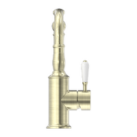Basin Mixer Hook Spout with White Porcelain Lever Aged Brass York NR69210201AB Nero Tapware