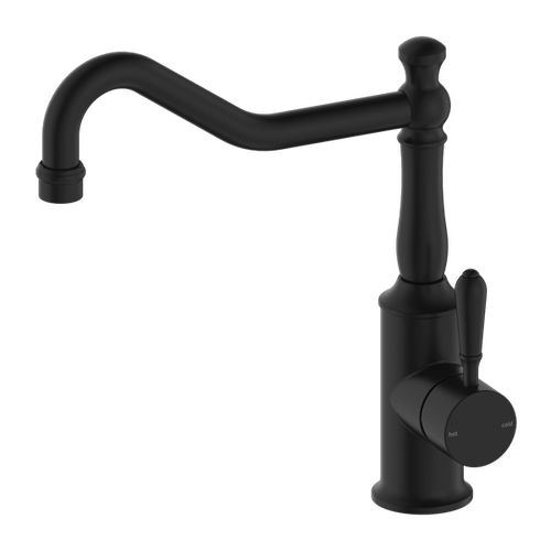 Kitchen Sink Mixer Hook Spout With Metal Lever Matte Black York NR69210702MB Nero Tapware