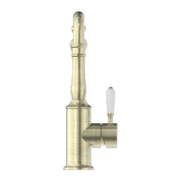 Kitchen Sink Mixer Hook Spout With Porcelain Lever Aged Brass York NR69210701AB Nero Tapware