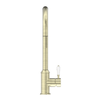 Pull Out Kitchen Sink Mixer Gooseneck Vegie Spray Porcelain Lever Aged Brass York NR69210801AB Nero Tapware