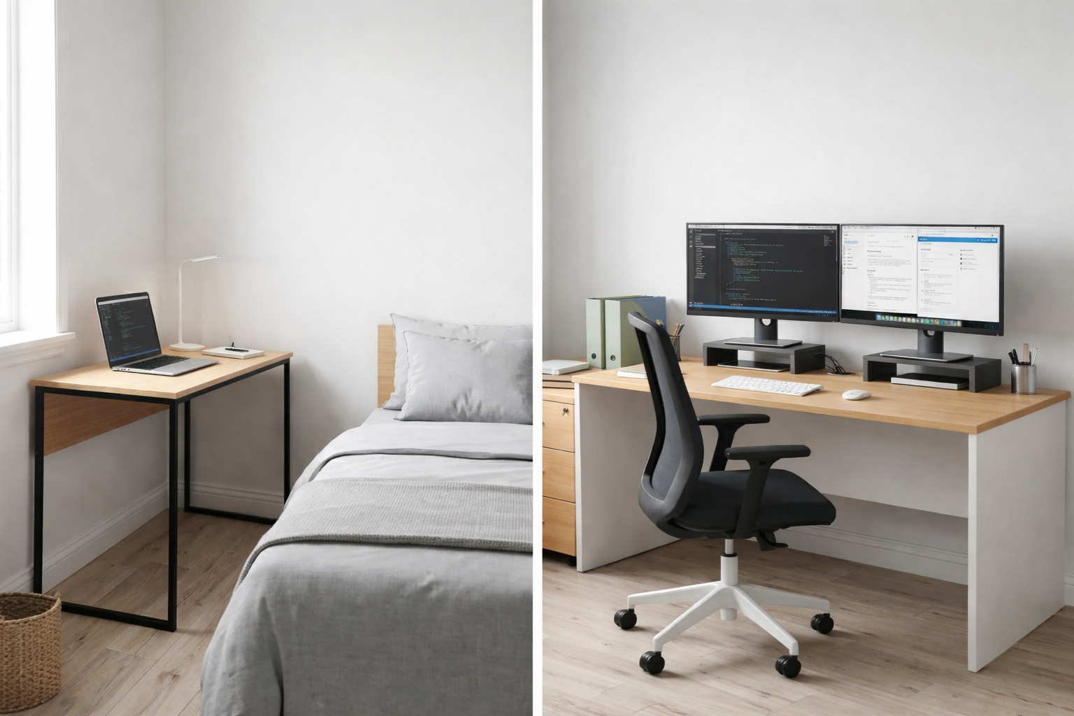 There is a big difference between a desk that technically fits and a desk that actually works in the room.