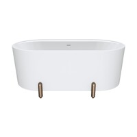 Fienza Aluca Freestanding Bath 1500mm Urban Brass Legs w Overflow Matte White FR88-1500W-CO-OF