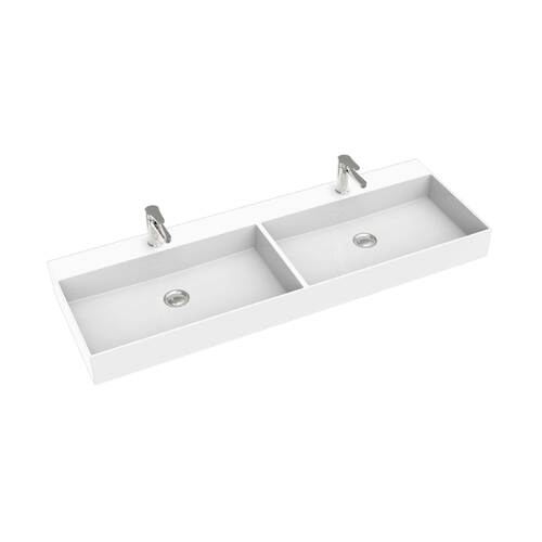 Seima Above Counter Marstone Solid Surface Basin 1205mm x 405mm Double Bowl Rectangular with Overflow 1TH Matte White TAVI 1206 191149