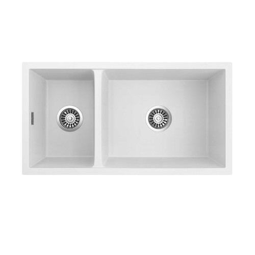 Seima Above or Under Mount Arqstone Sink 2 Bowl Integrated Overflow 450 x 440 x 210D White OROS 822 191041
