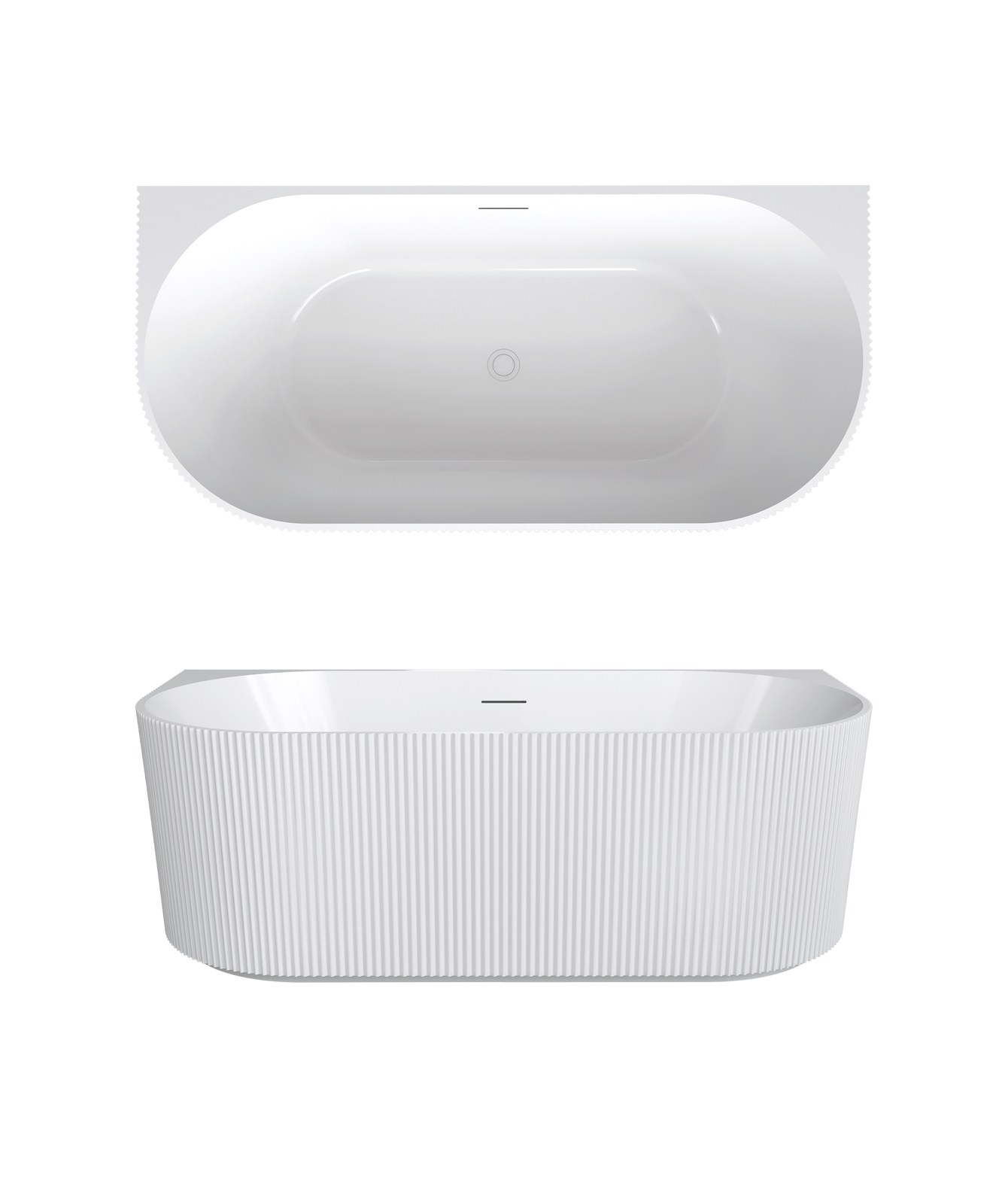 Exterior of bath is fully fluted from base to rim, with a shadow line at base of bath