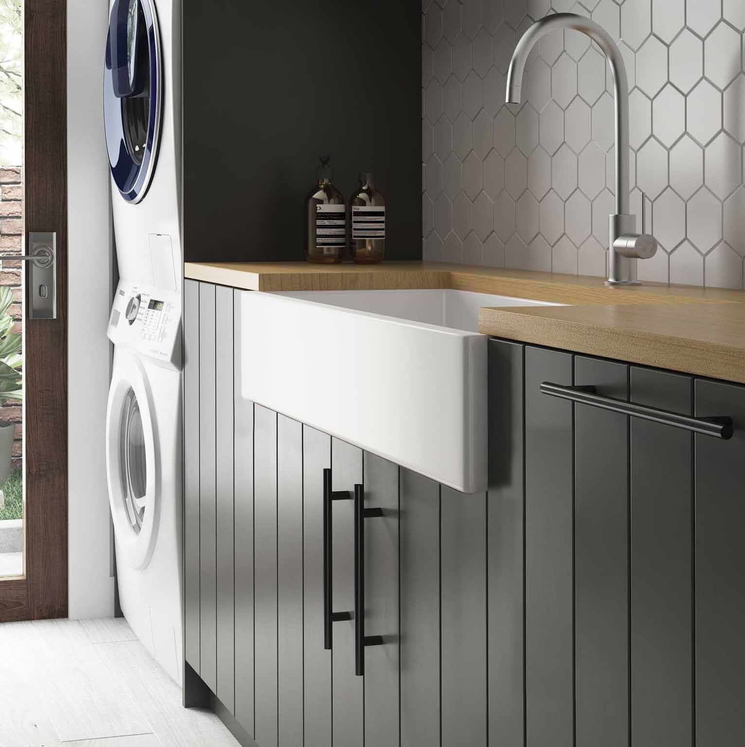 Seima Farmhouse Butler Arqstone Sink 1 Bowl Integrated Overflow 900 x 515 x 190D White OROS 900 191044