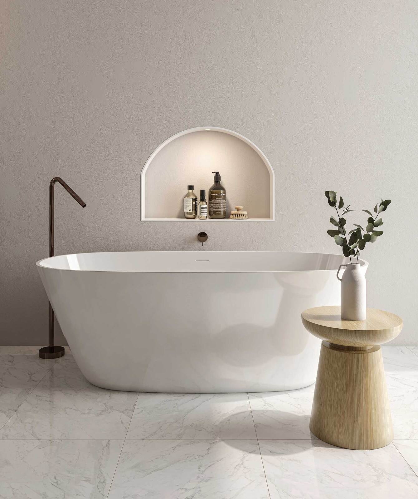 Seima Freestanding 1700 Bath Fine Rim Super-Ellipse Design in Gloss White Sanitary Grade Acrylic with Integrated Overflow SYROS 105 192212