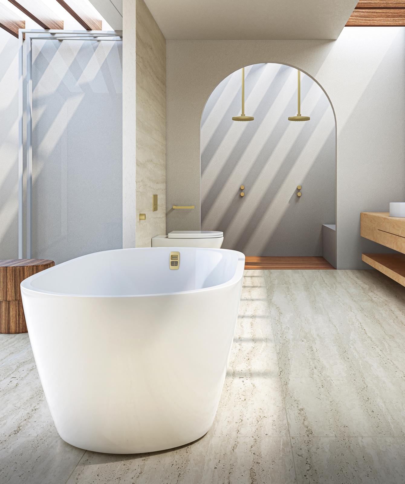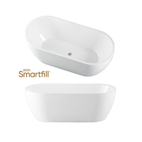Seima Freestanding 1700 Bath with Smartfill Bath Filler Bezel and Waste in Brushed Gold Sanitary Grade Acrylic Gloss White ARKO 120 192546