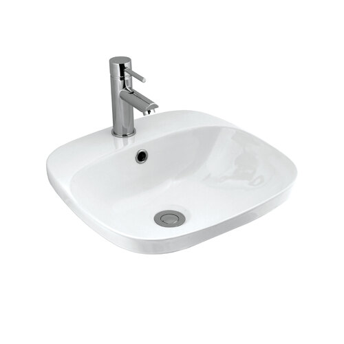 Ceramic inset above counter basin, rounded square