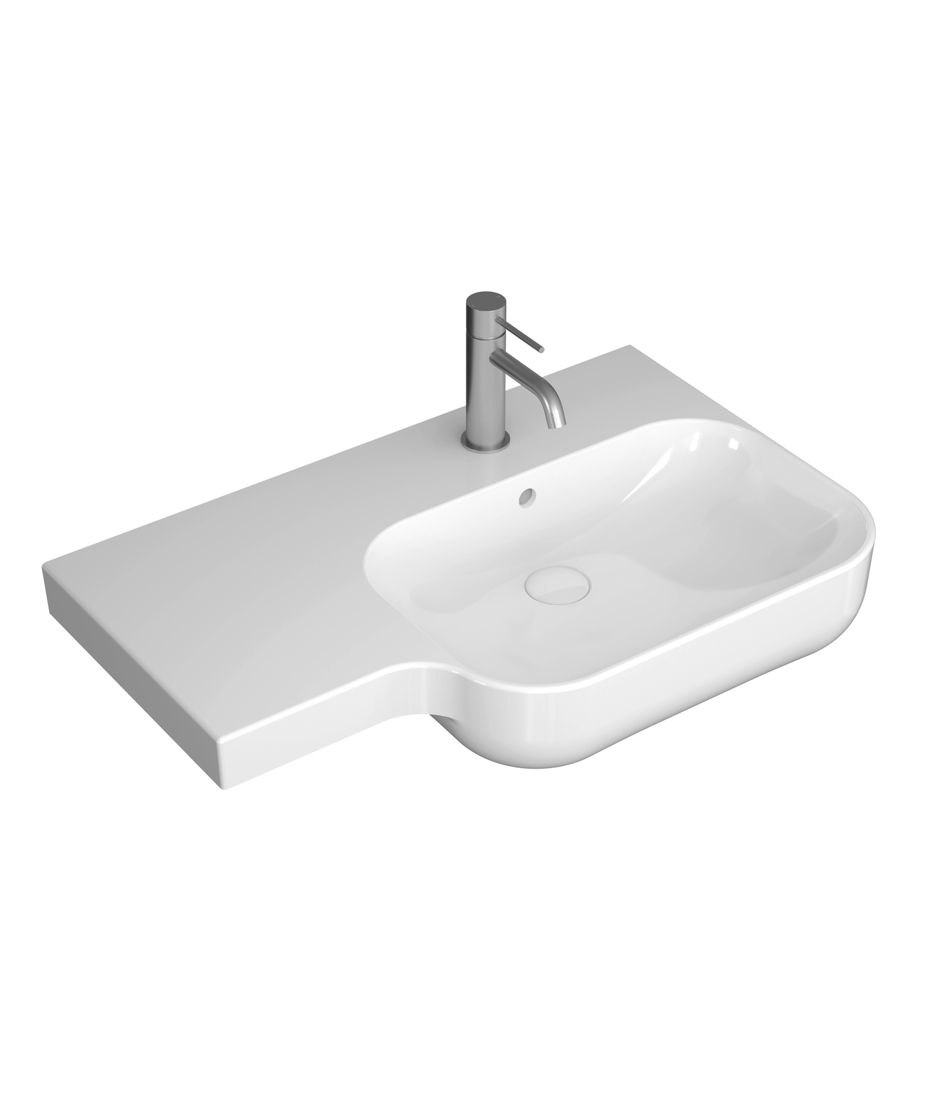 Seima Wall Basin Ceramic Basin 720mm x 450mm Left Shelf Rounded Rectangular 0TH with Overflow Gloss White LIMNI 720 192303