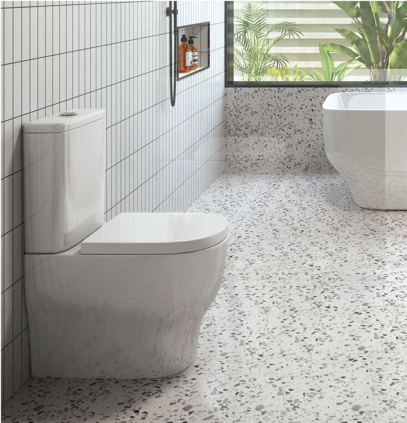 Cistern and pan white vitreous china with nanoglaze surface, easy to clean