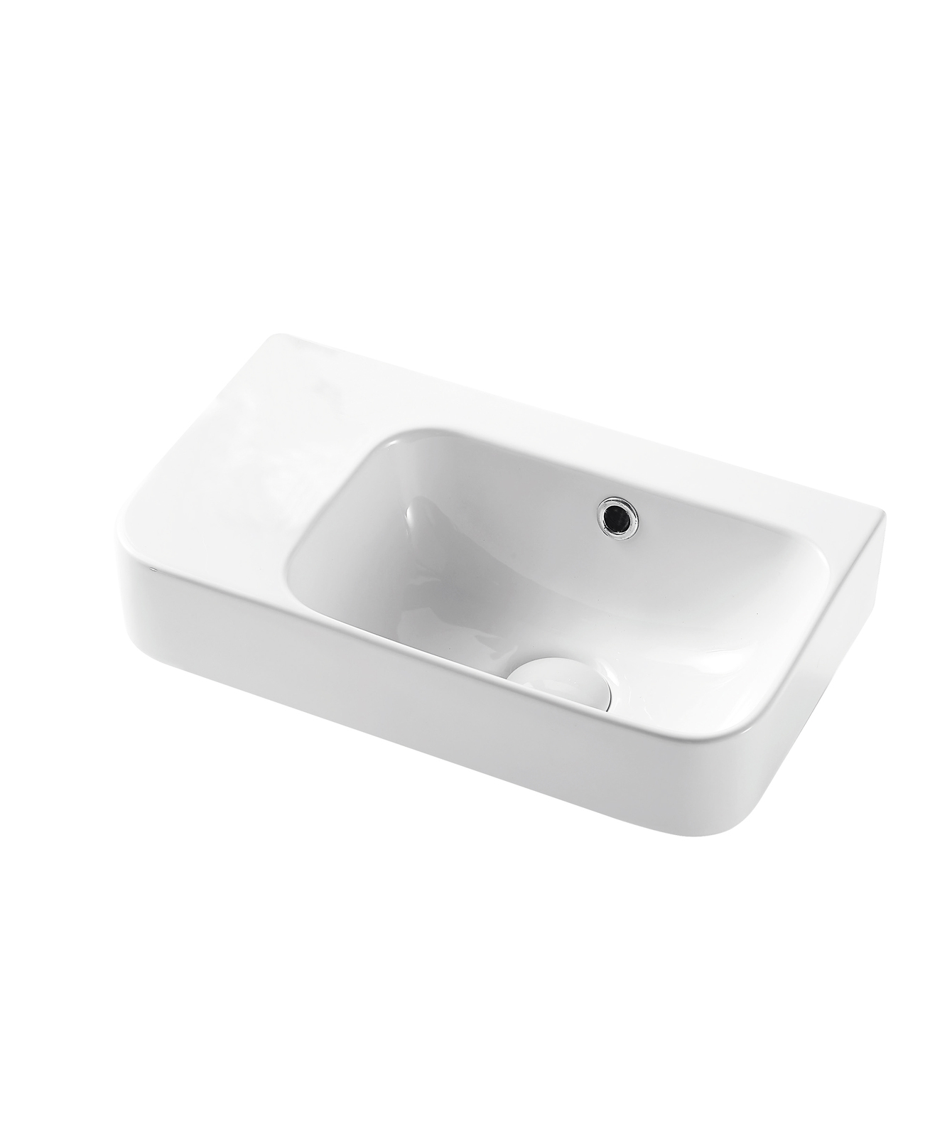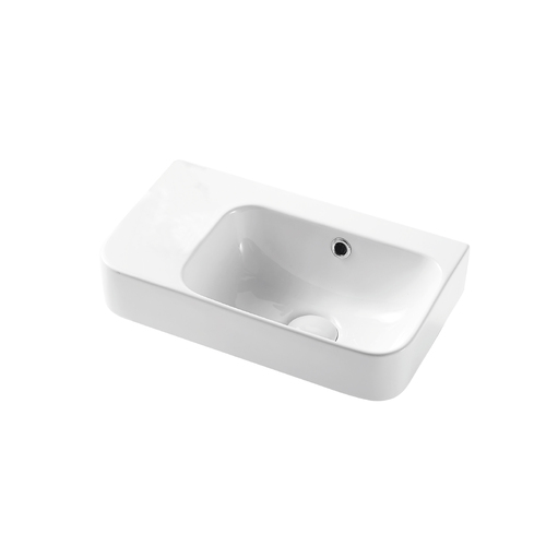 Seima Wall Mount or Above Counter Ceramic Basin 450mm x 260mm Rectangular Fine Rim 0TH with Overflow Gloss White LIMNI 260 191138
