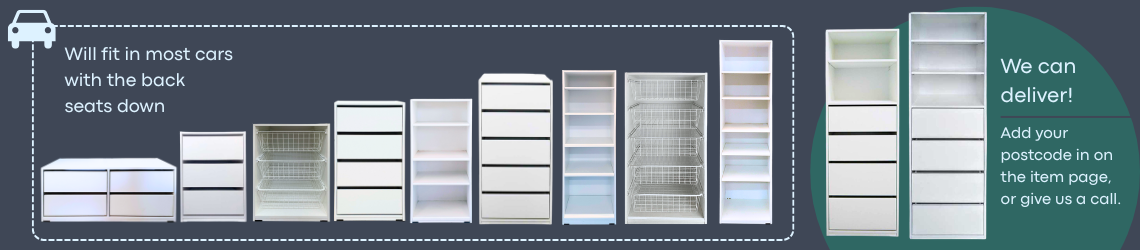 Certainly not. The 3-drawer unit is a great little bedside table, the wire baskets are popular in kitchens and pantries, and the larger units are handy for garage storage. We also stock a range of bedside tables, tallboys, and (ironically) wardrobes in-store.